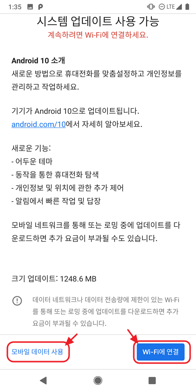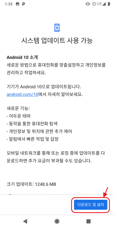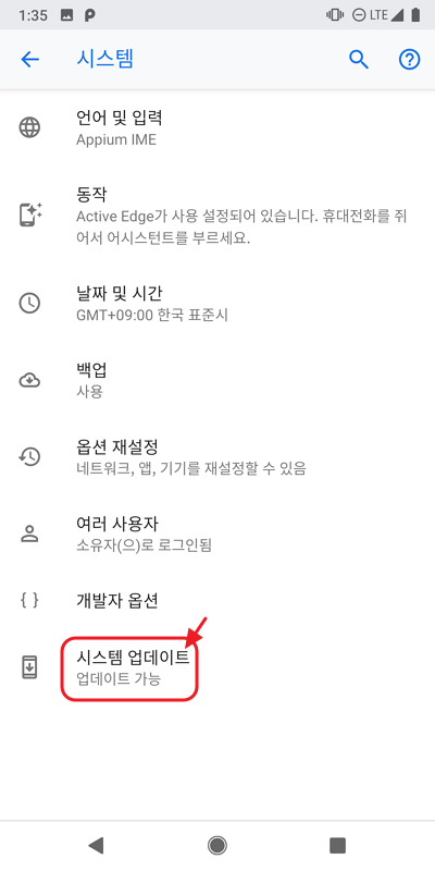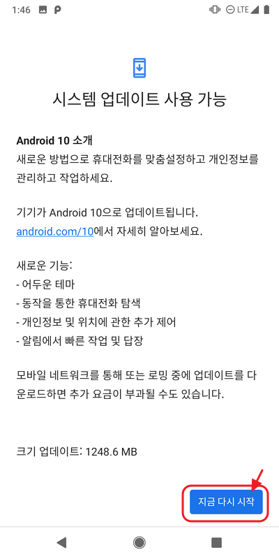 여기서는 Android 10 버전이 시스템 업데이트 사용 가능 이라고 노출되니 아낌없이 받아 주세요 ^^
