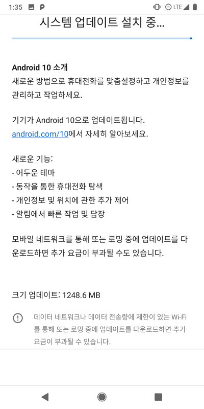 아직 한국폰에는 안드로이드 10 버전이 정식으로 업데이트된게 없습니다.