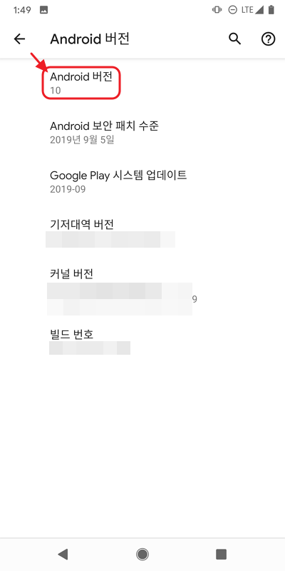 해당 버전을 연속으로 터치하면 이렇게 Android 10 화면을 보실 수 있습니다.